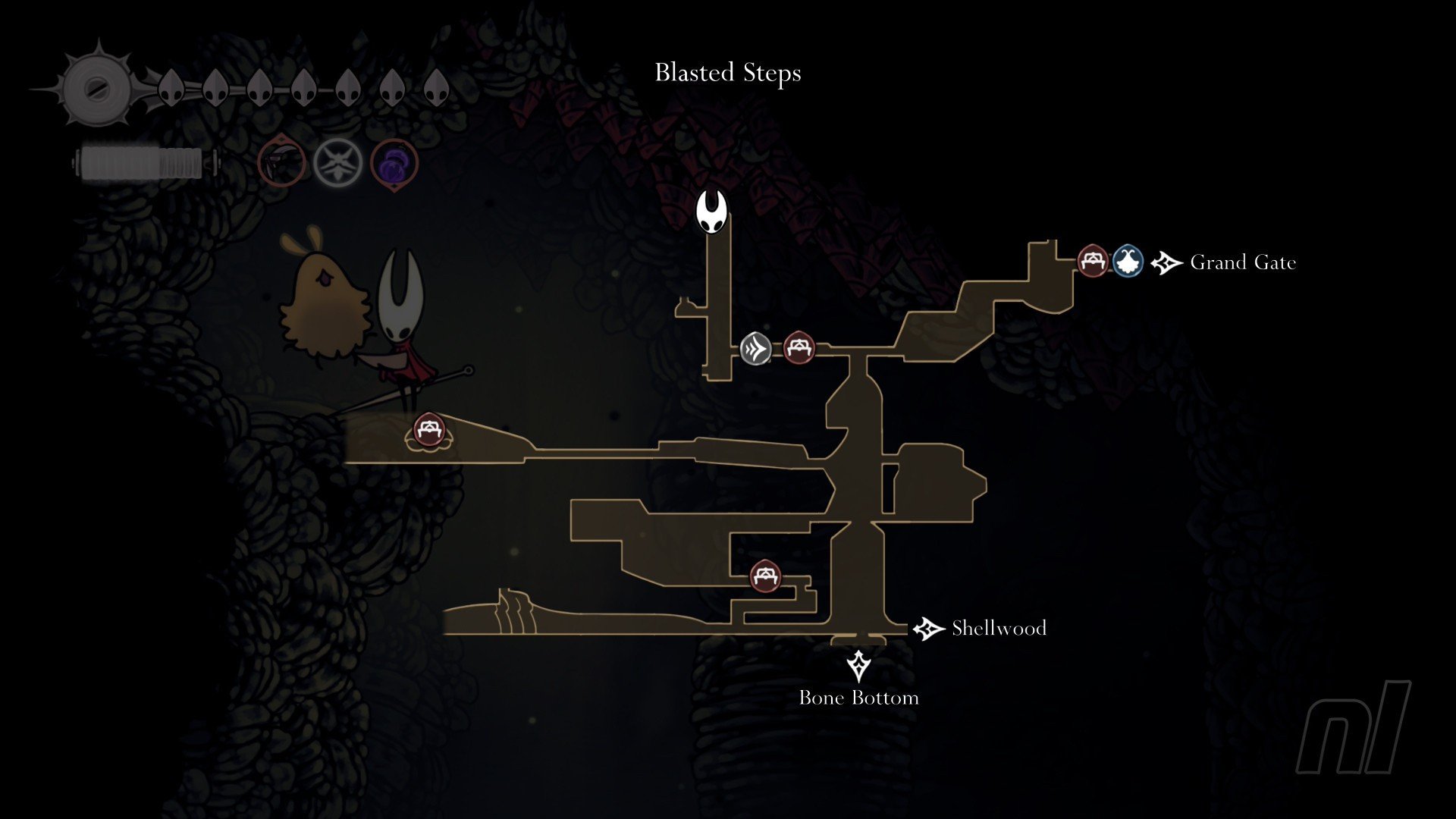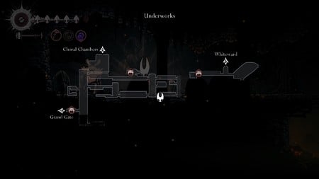 At the Bellway, where the Bell Beast waits patiently, go under the left platform to find a hidden pathway. This is a spike jumping puzzle, and it's a little frustrating! So be patient.
