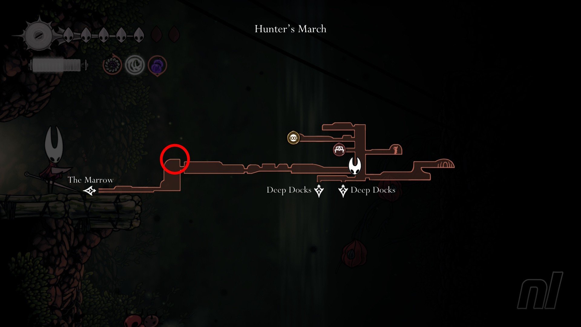 After you've unlocked the Swift Step Ancestral Art, head back to the very first bench in Deep Docks, then head right one room,