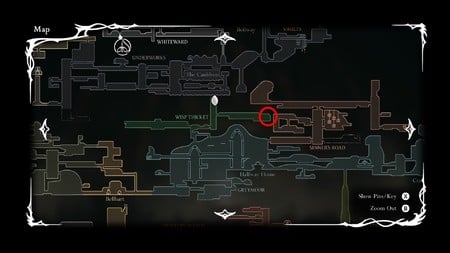 From the Bellway in Greymoor, head up the tower on the left of the map and climb to the very top (where you found a Flea earlier). In the top-left corner is a hidden pathway. Up here is the entrance to the Wisp Thicket.