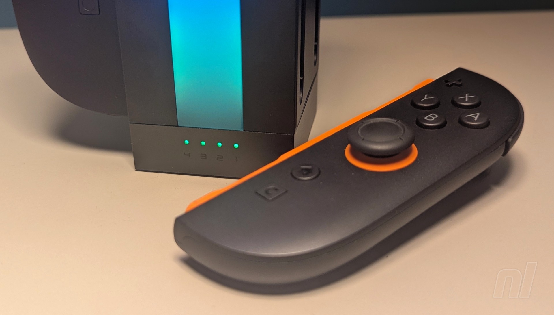 Green LEDs on the bottom of the device indicate which of the four slots is currently in use. By default, the lights will remain constant, but will start blinking when charging the Joy-Con. Once you’re fully charged, all lights will stay lit, so you’re good to remove them at this point.