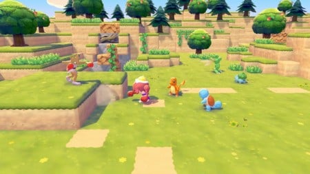 There’s so much potential here. Just looking at the key art, Hitmonlee and Hitmonchan are relaxing under the waterfall, Scyther and Pinsir are squabbling next to the Pokémon Center, and Sudowoodo is standing in between rows of trees, blocking the path. These things all make sense, either based on the Pokémon’s behaviour in previous games or on their inspirations.