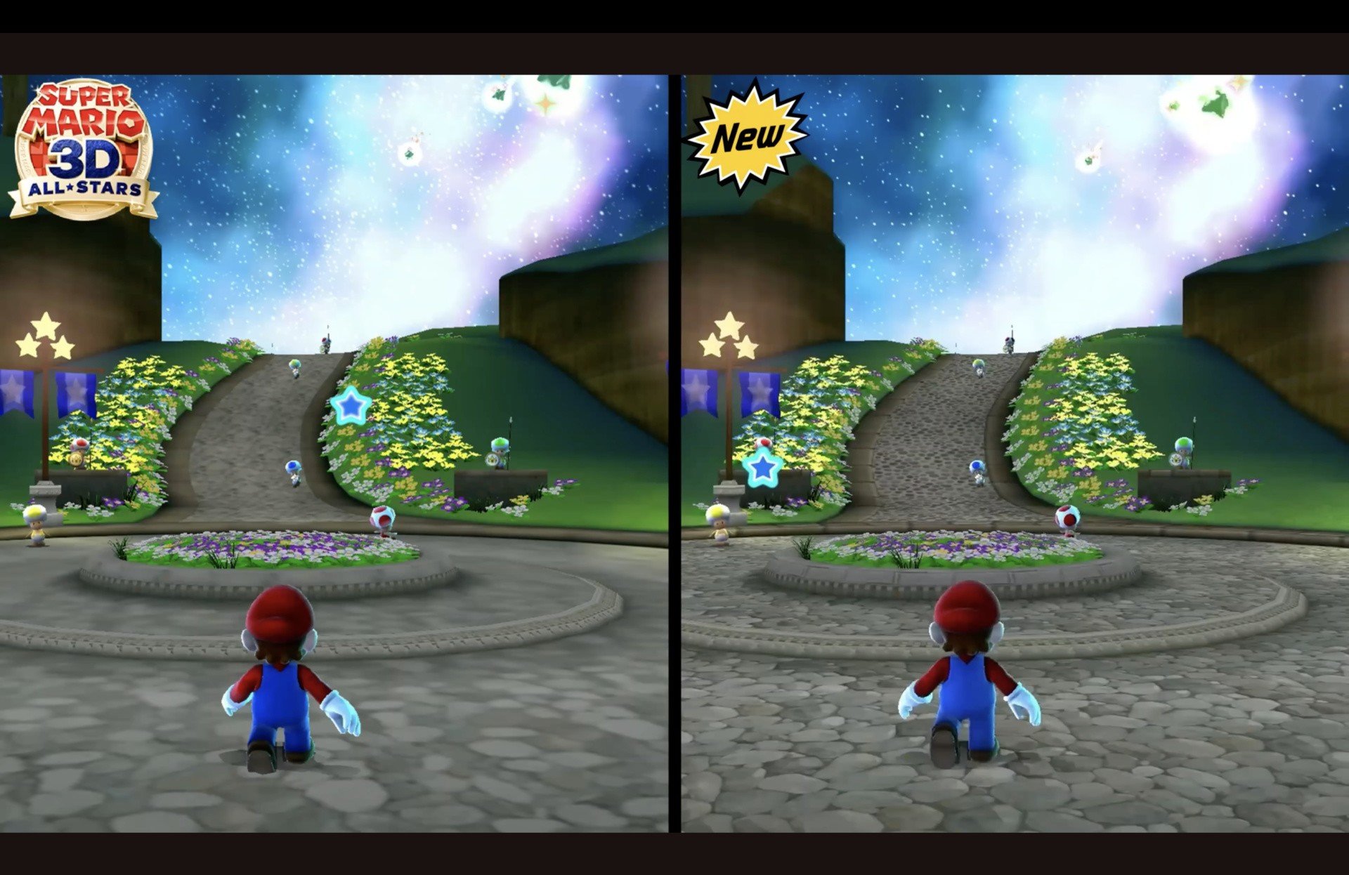 You can check out the full video above, which includes a playthrough comparison of the five minutes of Super Mario Galaxy's latest port (on Switch) as posted on Nintendo UK's website versus the one we got with Super Mario 3D All-Stars, giving better examples of texture work that's been done than "visual enhancements" really gets across. Just check out the cobblestones in the area shown below as Mario lands; there's a big difference in the detail.