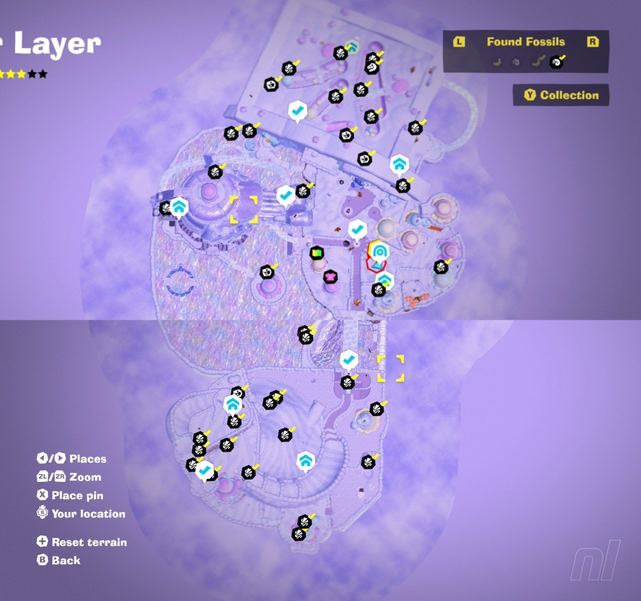 Below, we have laid out a map for every sublayer in the game where you'll find Fossils, accompanied by a rundown of how many there are to find and a quick explanation on how to nab the Extra-Rare variants on all layers where that's applicable.