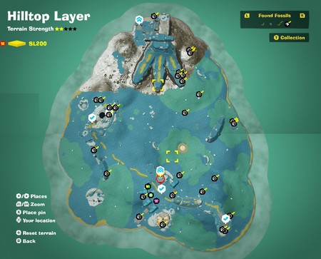 You'll find 30 Fossils in the Hilltop Layer, all of which fall into the Normal Ammonite (alt colour) category. There's no Extra-Rare Fossil to be found here, so let's get straight into the map.