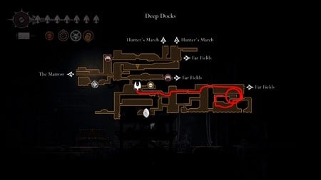 After you've unlocked the Swift Step Ancestral Art, head back to the very first bench in Deep Docks, then head right one room,