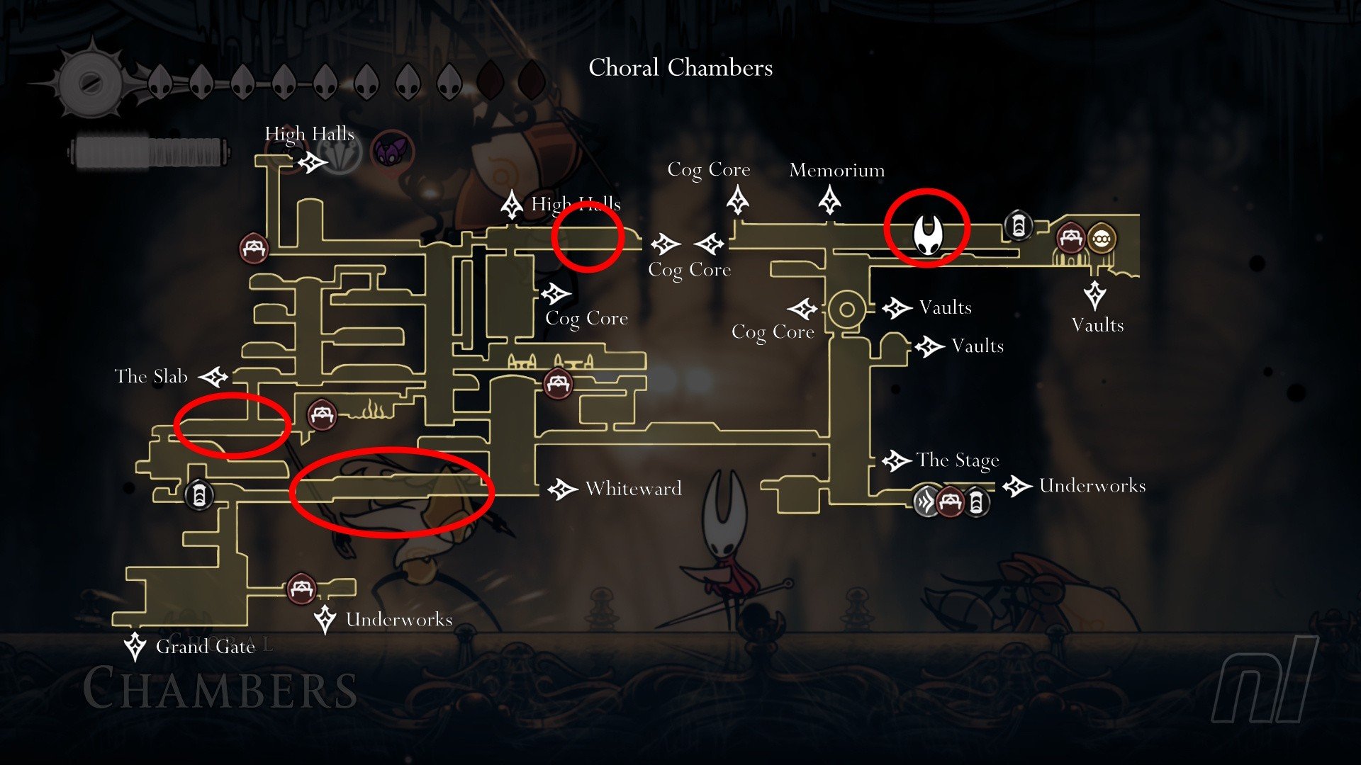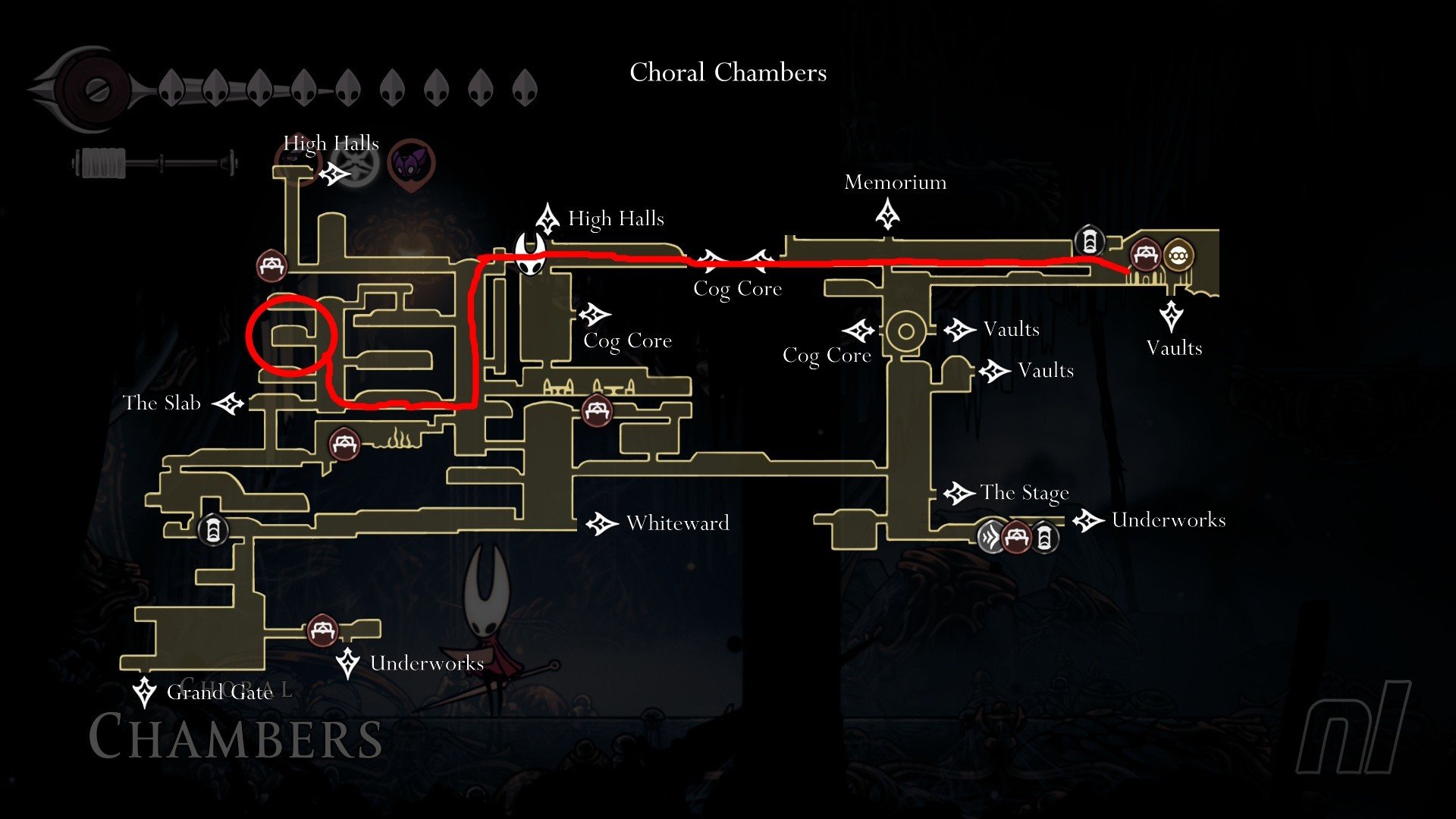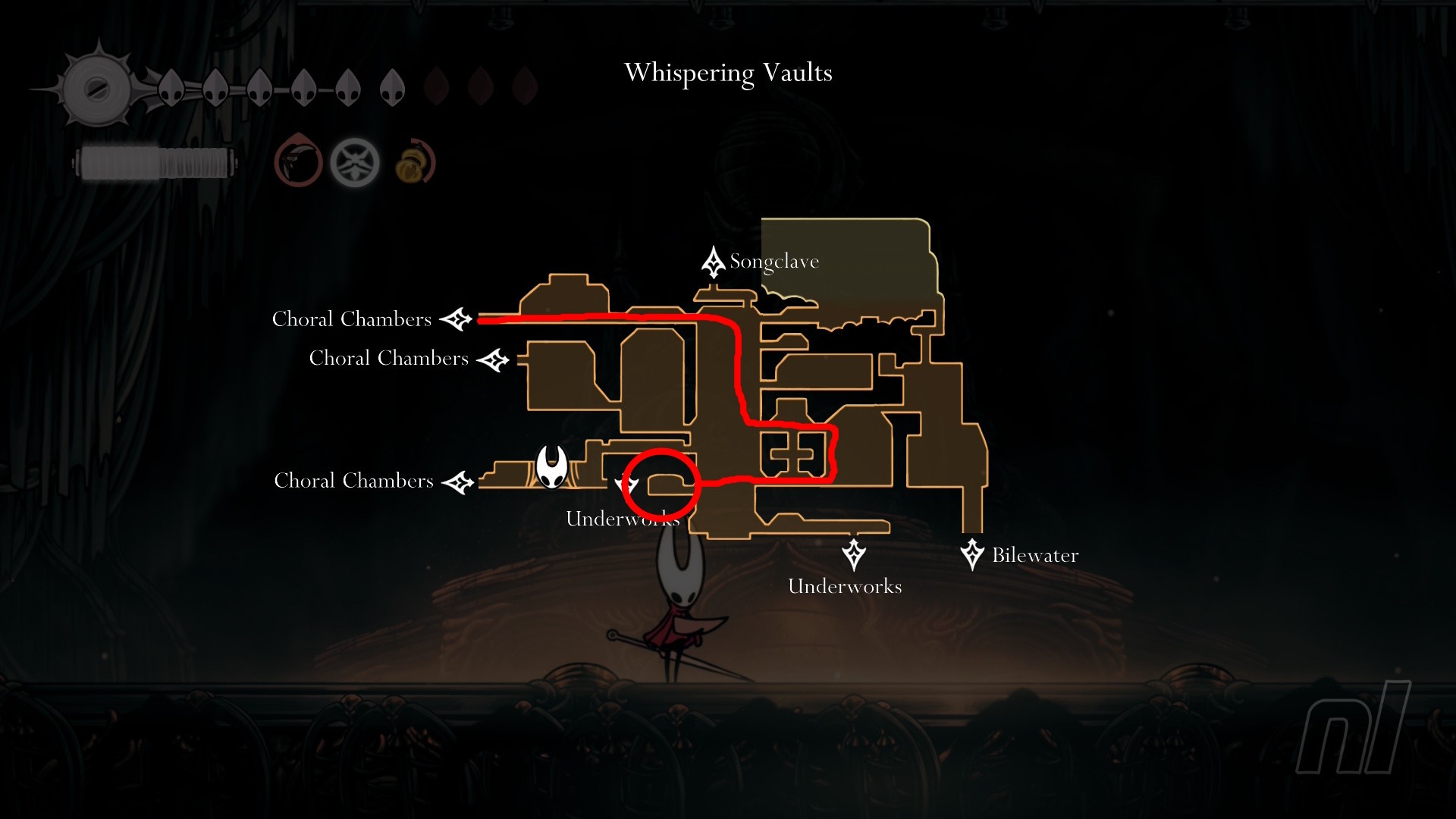 We stumbled upon the Choral Chambers bell room by random, and there are multiple ways you can reach it, but assuming you haven't unlocked the Ventrica nearby or are simply walking on-foot from Songclave, check the route above.