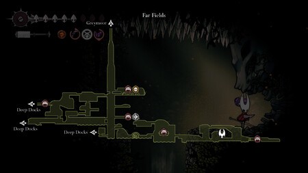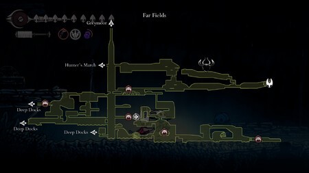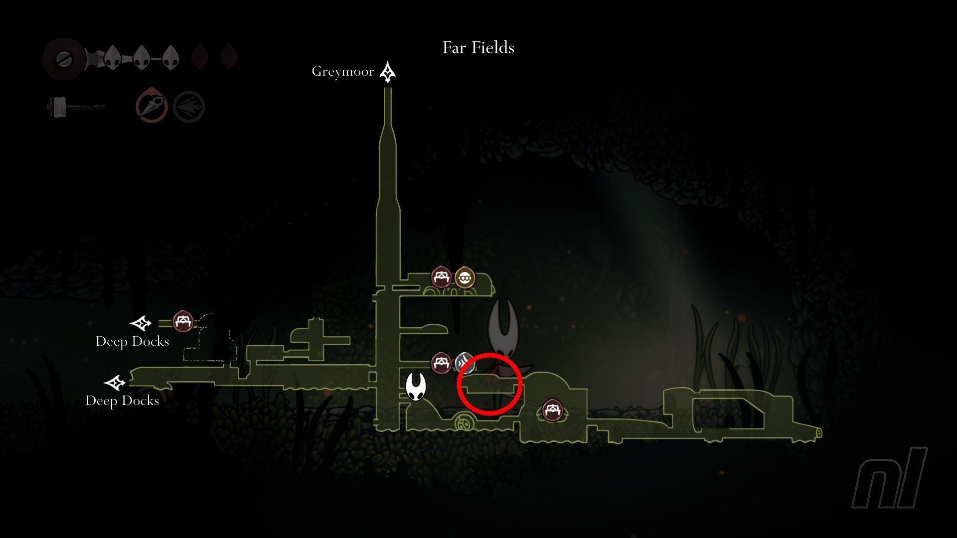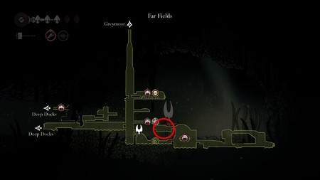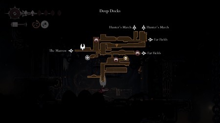In Deep Docks, you'll see a Mask Shard hiding behind a locked door. You can't open it from this side, but you can get to it from The Marrow. So head there and then, using drift and wall climbing, make your way to the top right of the areas (below the hole that takes you to Hunter's March).