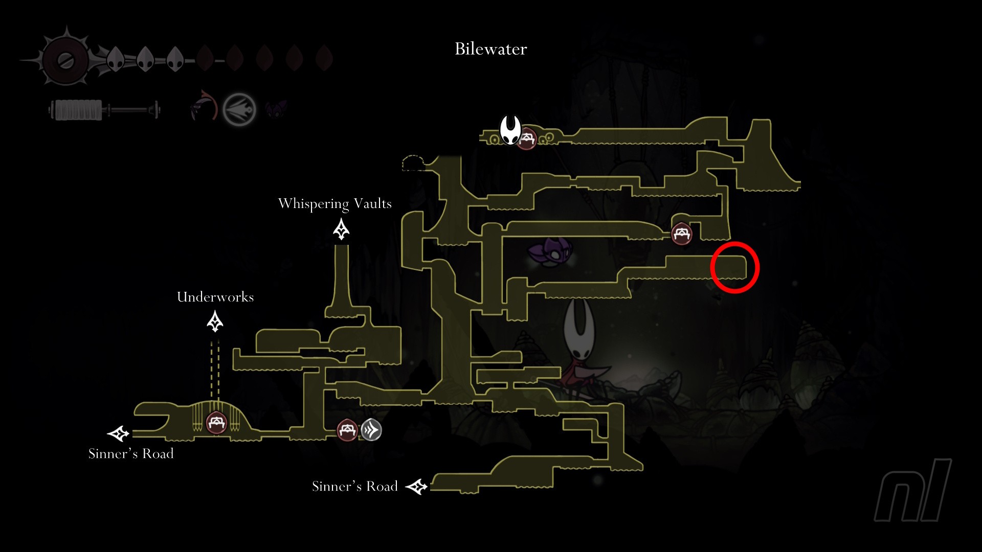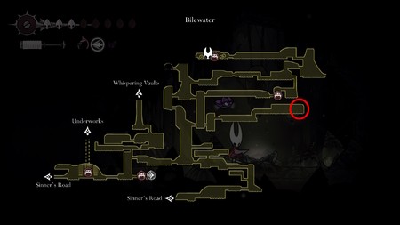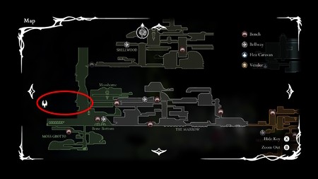 In the Weavenest Atla, east of Moss Grotto, at the bottom of the light elevator shaft you want to climb up and go through a door on the right. Follow the path until you reach a room full of lava — you'll know you're then when you get scratched to death by a spider in the ceiling. Yes, not scary at all.