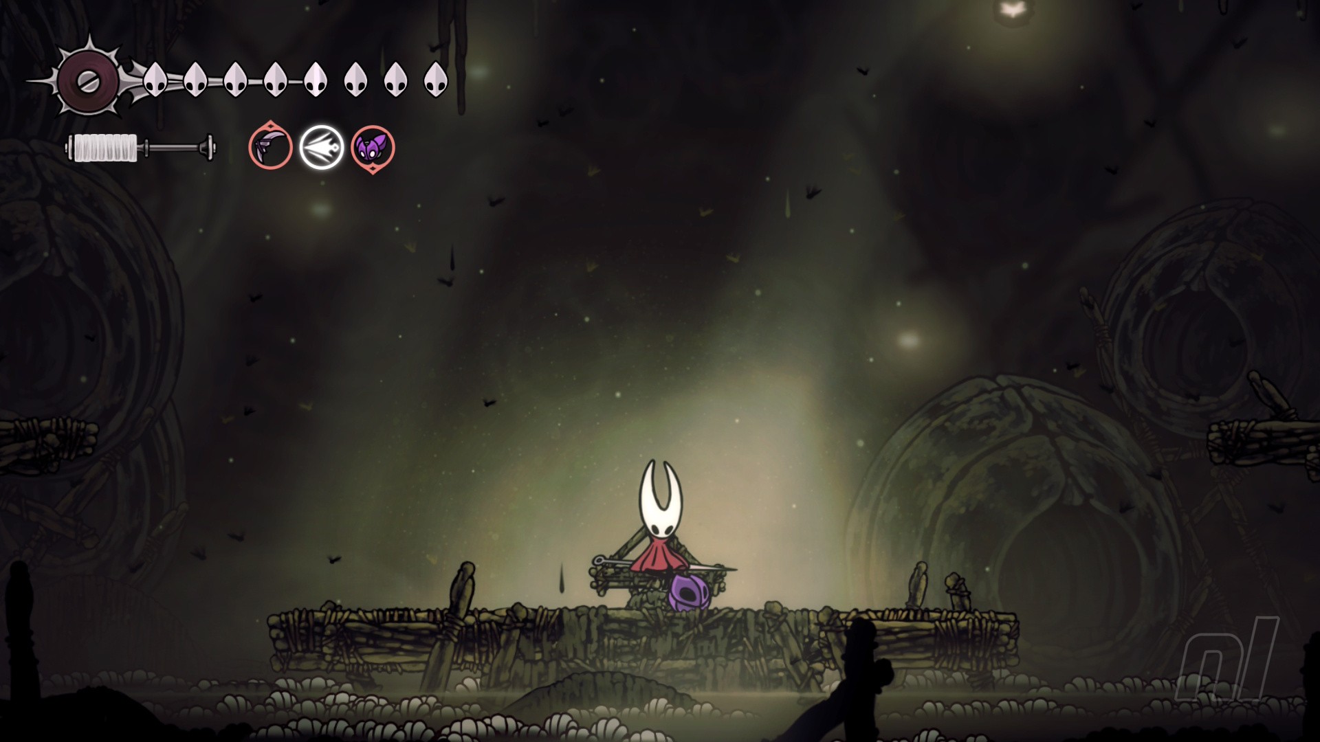 And what a world to fail in, too. Pharloom is still a sombre world, but it's a rainbow compared to the muted tones of Hallownest. It also pops beautifully on Switch 2, particularly in handheld. It’s also perfect at 120fps. When I think of Silksong’s world, I think of the ornate converted bells made into homes and the thickets of leaves in the background of the swamps, all accompanied by Christopher Larkin’s incredible score. The poignant strings of Hunter’s March is one of my favourites, hinting at the kingdom of the ants’ fate from time’s past. Cogwork Core’s ticking and piano notes helped me time my platforming perfectly. Then there’s the incredibly fast-paced strings of Widow’s fight, a relentless onslaught of violins and cellos to match her snappy movement.
