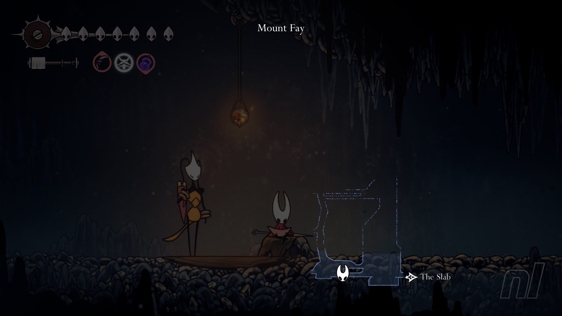 Despite how difficult Mount Fay actually is to traverse, Shakra (she's back!) is easy to find. She's in the very first room inside the mountain itself, keeping warm by the fire and offering a bench for Hornet, to prepare herself for the challenge ahead.