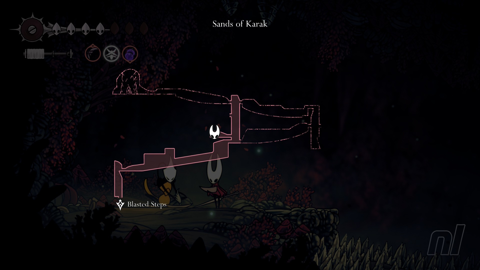 Abandoning the musty halls of The Citadel for a moment, you can head to this desert area just above the Blasted Steps (you need Clawline and Double Jump to get there).