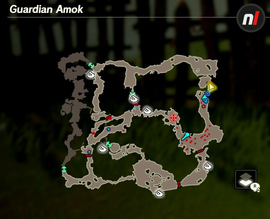 - Korok #3 — In the north west on the platform to the right of the Unearthed Guardian (just before you jump to the lower level).