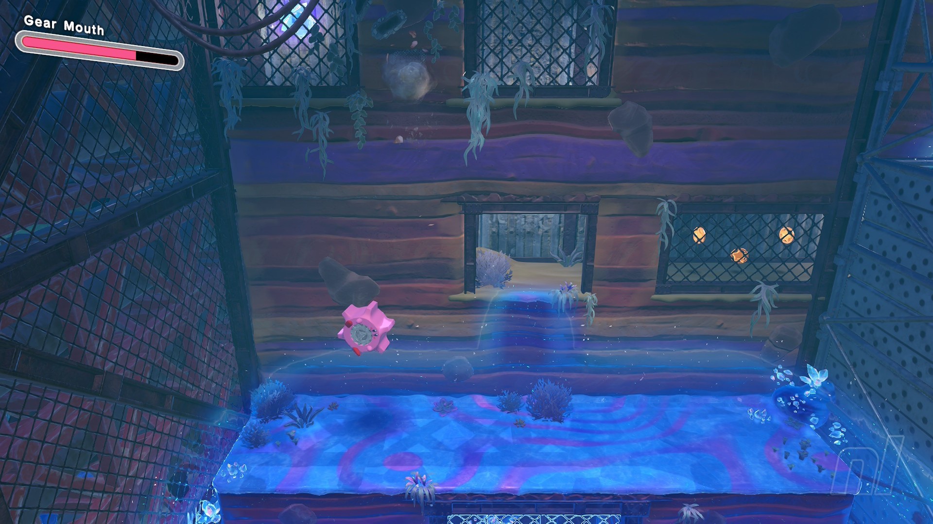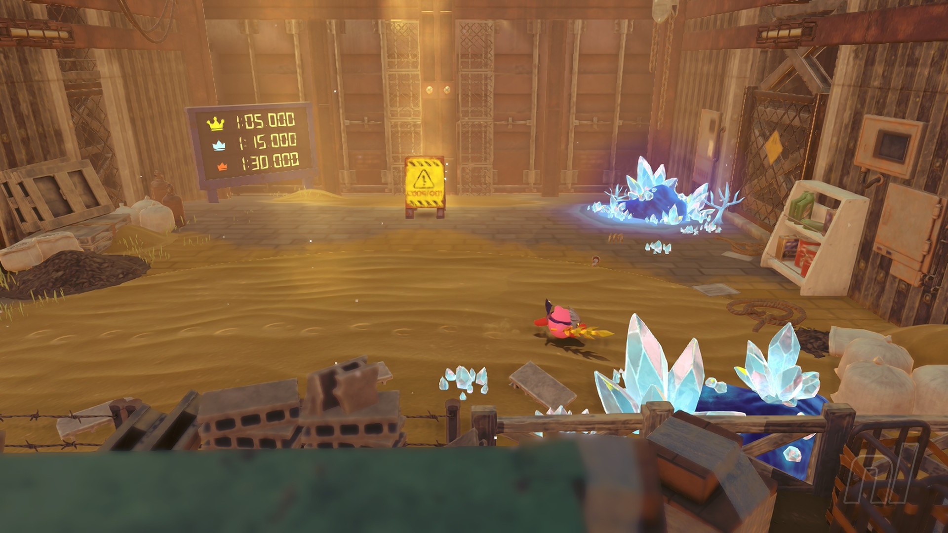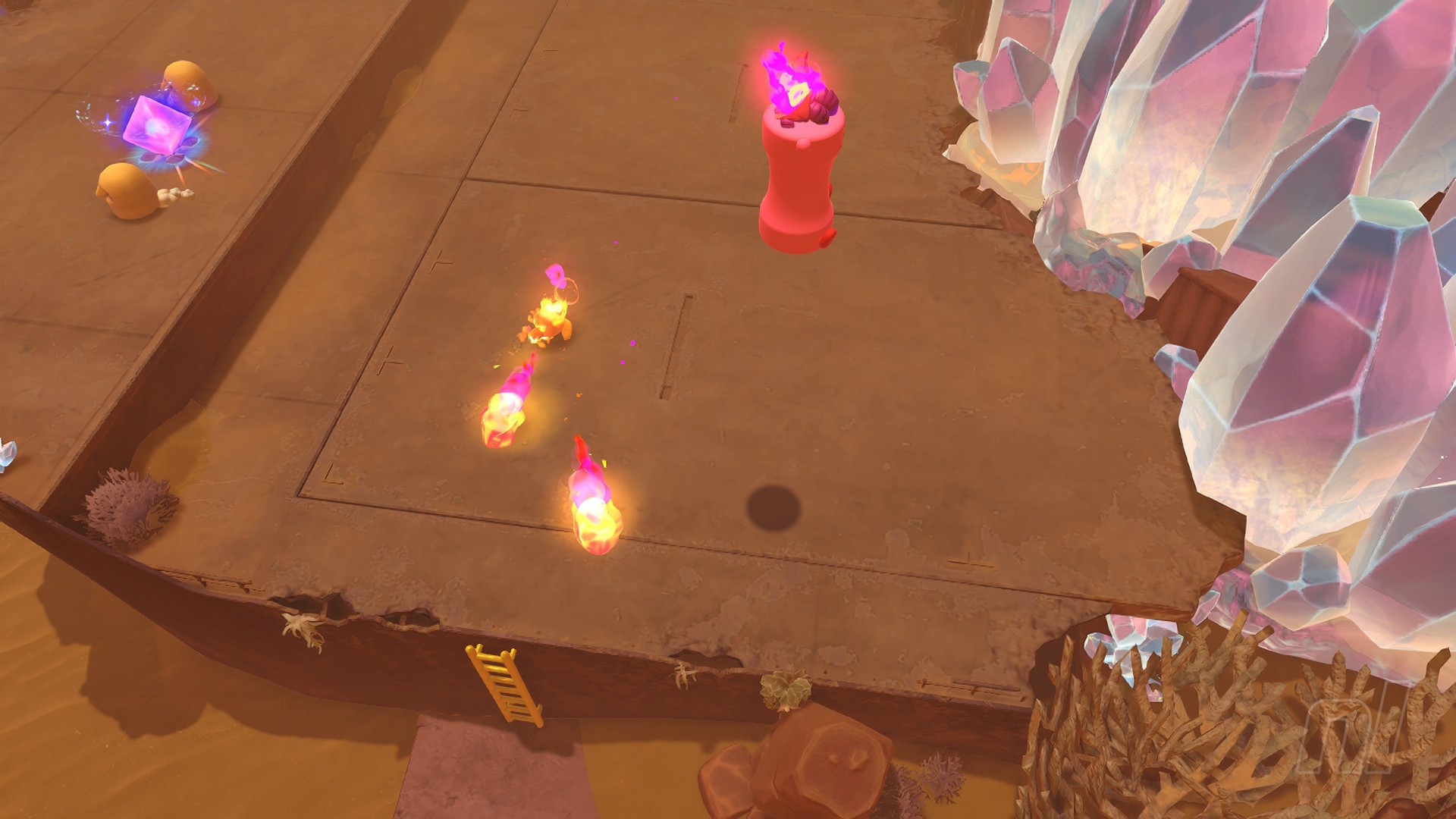 Just a little further along now, and still in cog mode, let's head down and left where you can see below, so you can traverse this fun little area and reach a crystal switch. Make the jump in the centre and nab this one.
