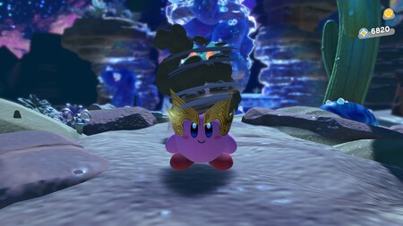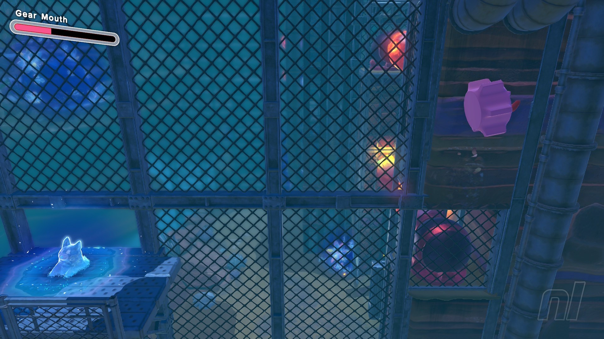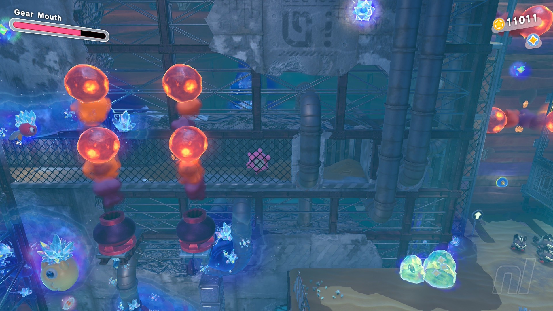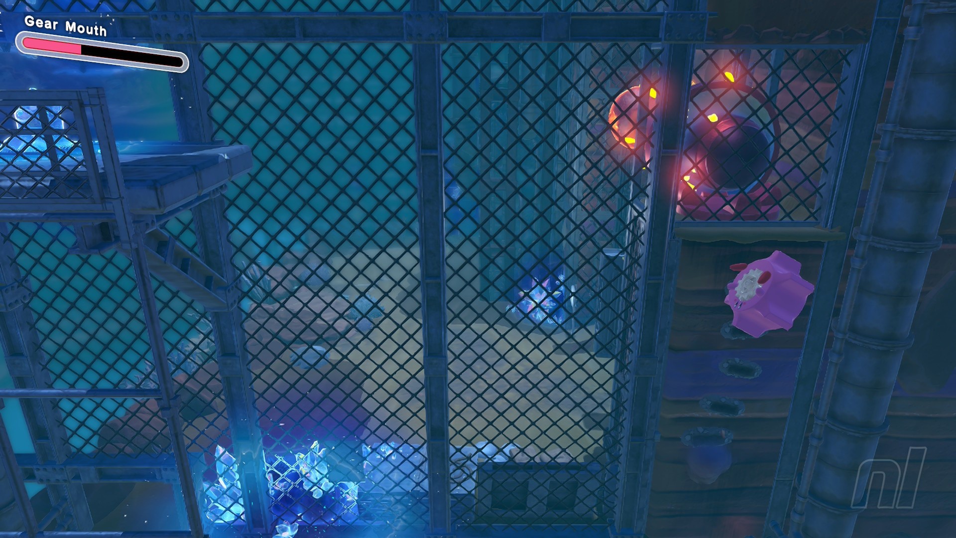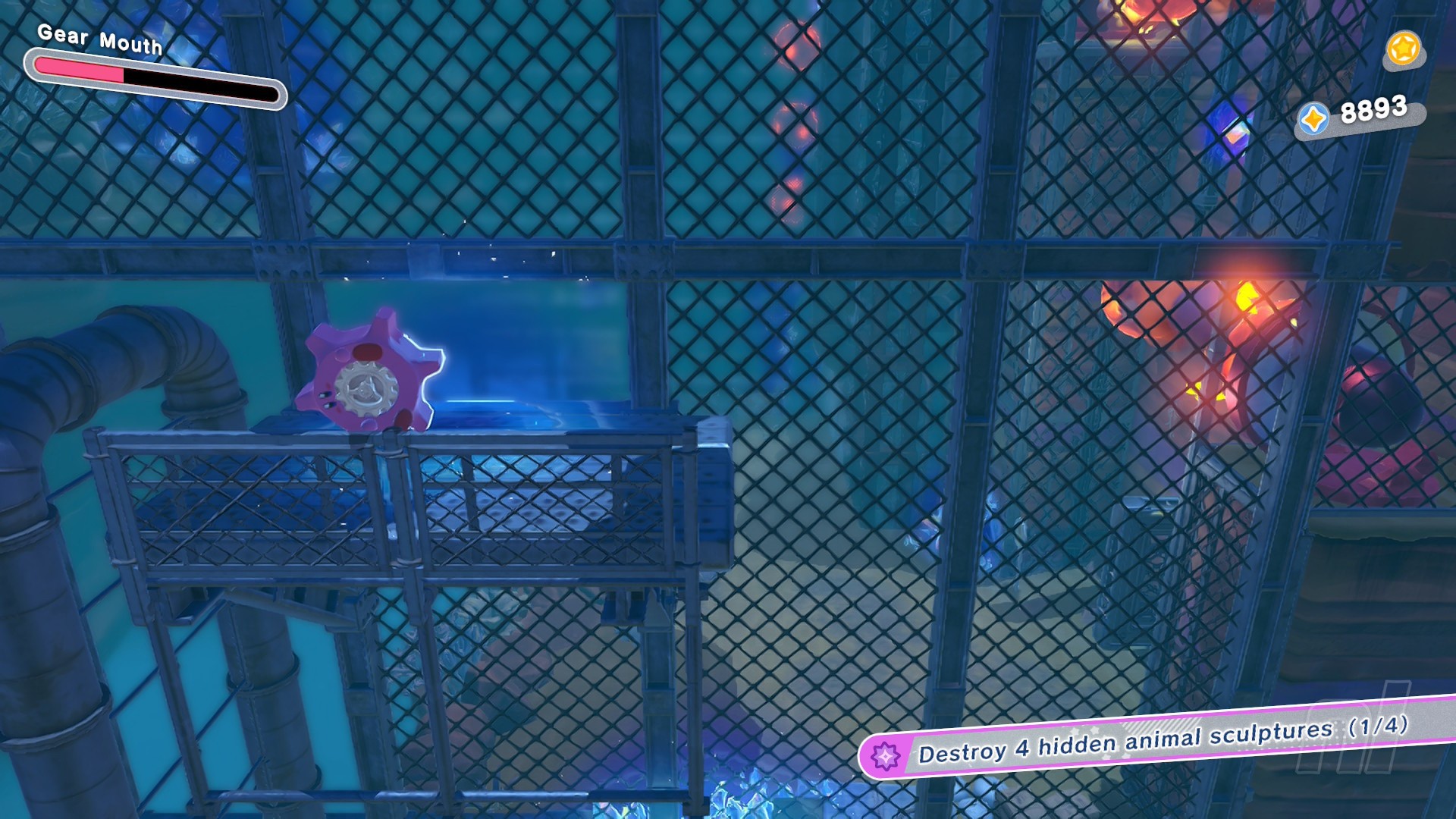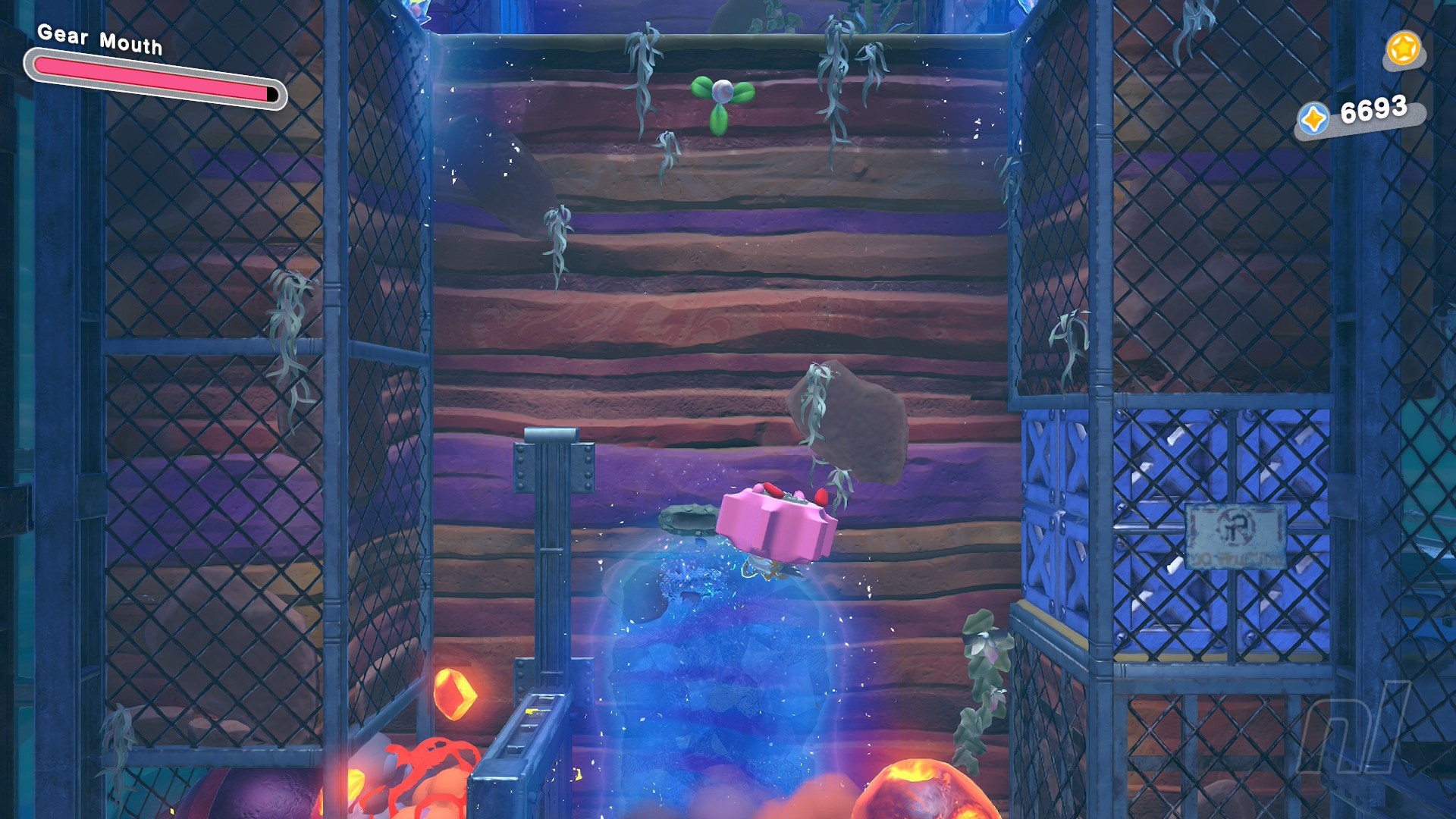Our first Starry is found by using Kirby's scissor-lift mode to roll across and then jump up into a little nook that you'll find in a semi-hidden area. To reach here, make the initial ascent and do the timed challenge for the coins on the way up.