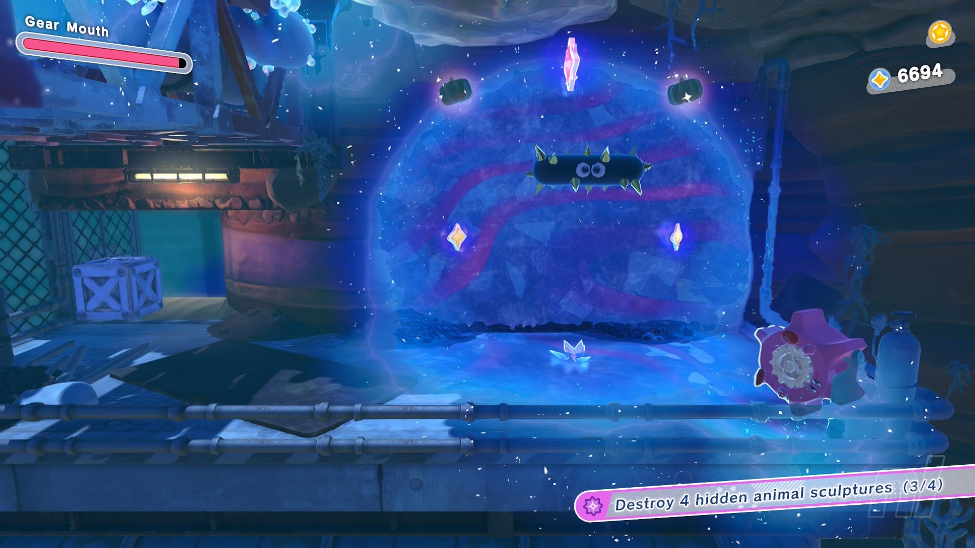 This one is during the Cog mouth section, and just after you get the 4th Starry. You'll need to watch for metal crates on the right of the vertical blue switch climb. Smash them with your cog and go around the corner to find this next ice sculpture hiding with some snacks.