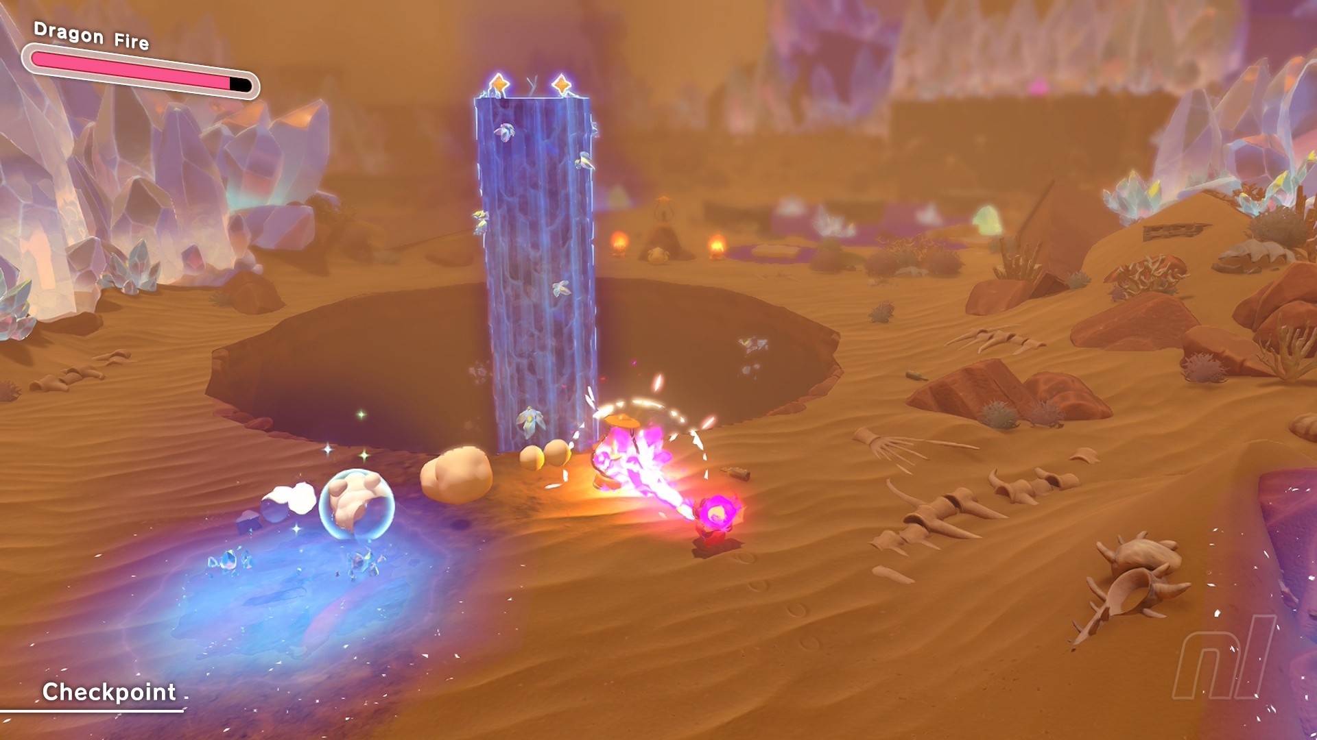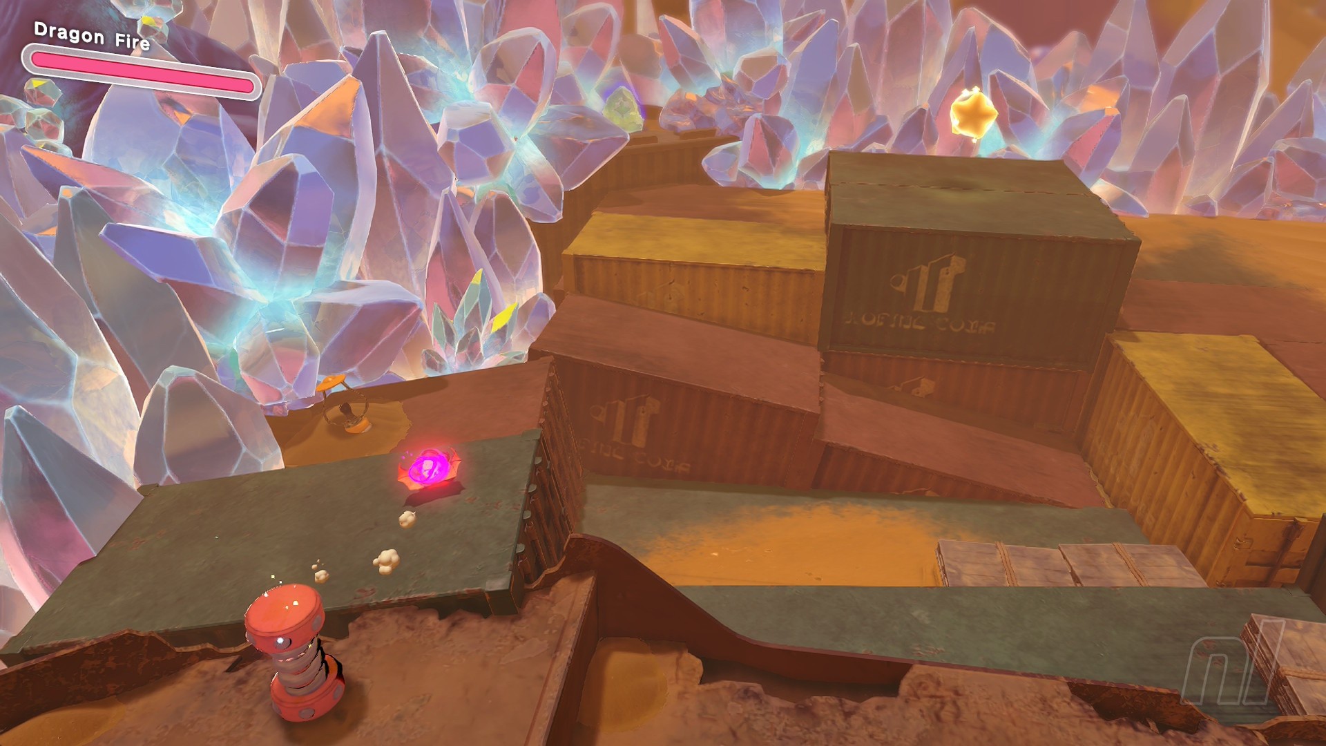 Secondly, you don't indicate where to find Crash in the level and some people might have trouble finding it because it's pretty well-hidden. For those that don't know where Crash is, when you first head back outside go up the ladder and to where the green Star Coin is. There is a hidden passage to the left that wraps around to a hidden area with a pile of Star Coins and a Bomber on top of a cactus. Swallow the Bomber as it falls to get the Crash ability.