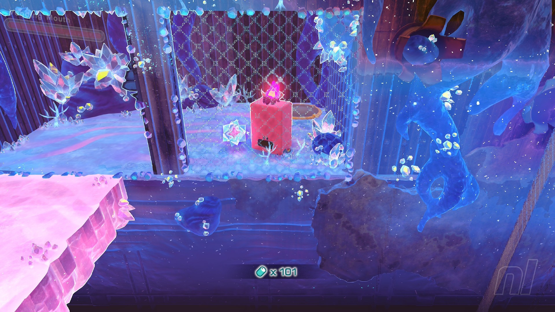 During the sign mouth ride, make sure to hit every enemy you pass. In order to nail them all, you'll need to make sure to hit every crystal switch as you pass them, including one tricky one that is on top of some ice steps, as shown in our pics.