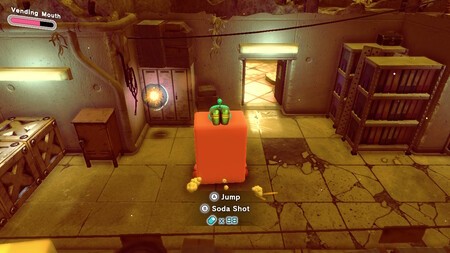 Stay in vending machine mode now and head out the door on the left, take out the metal crates immediately to your left here and head over to grab invincible candy, now charge all the way to the right and grab this one past all the enemies