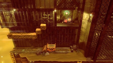 You'll go right and up a ladder to the end of this area now but as you do you'll see a metal crate to your left, head over and past the crate to interact with a shiny spot on a pipe to burst the crate open for this area's final soul fragment