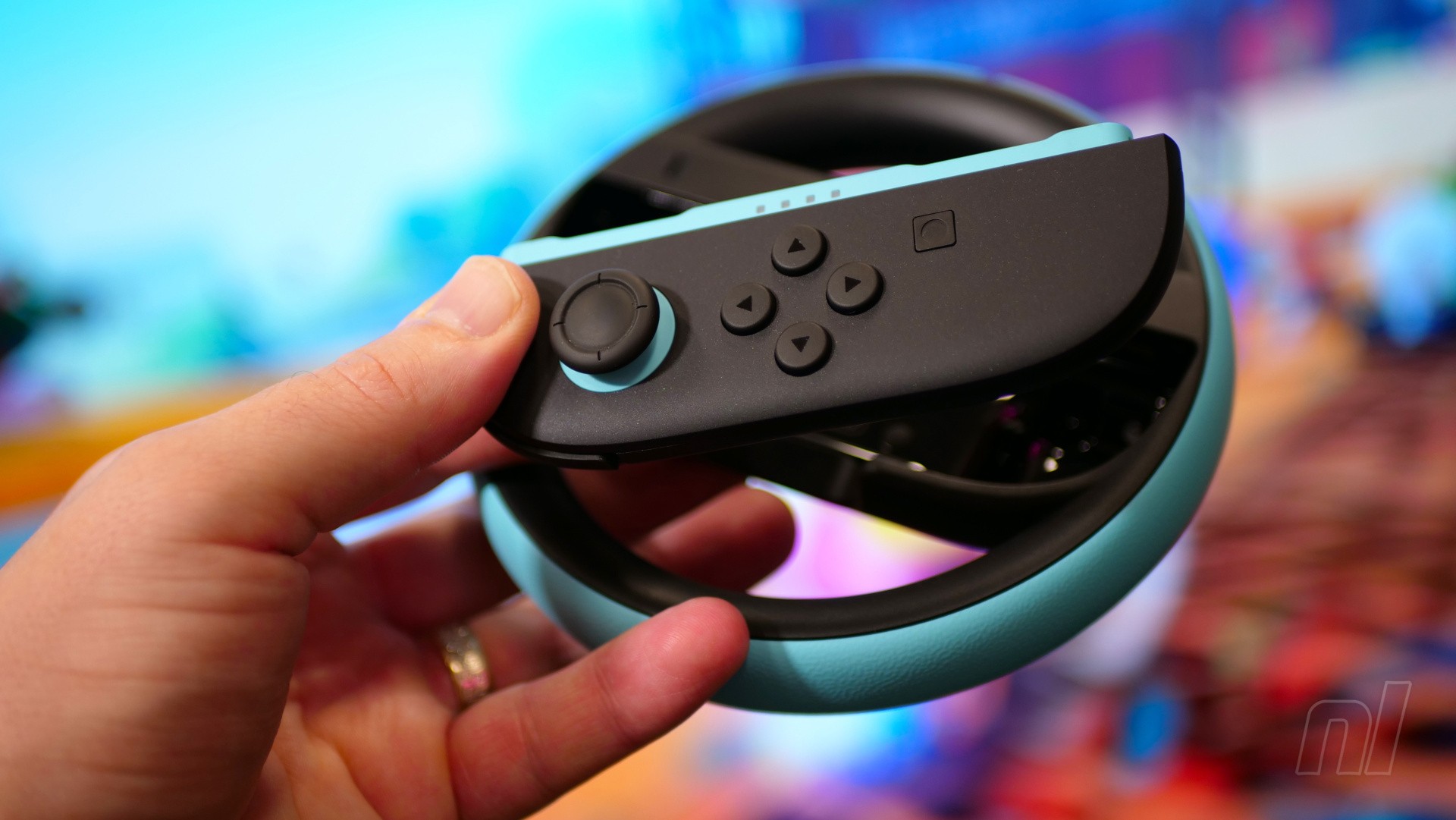 Before we dive into that, though, let's talk a little about what's new and different with this pair of wheels. As you can imagine, the design has changed in order to accommodate the larger Joy-Con 2, and I have to admit I do like the way these look. The coloured band which runs around each wheel offers welcome grip, and Nintendo has done a good job of making the wheel look as neat and tidy as possible – you won't spy any screws, for example.