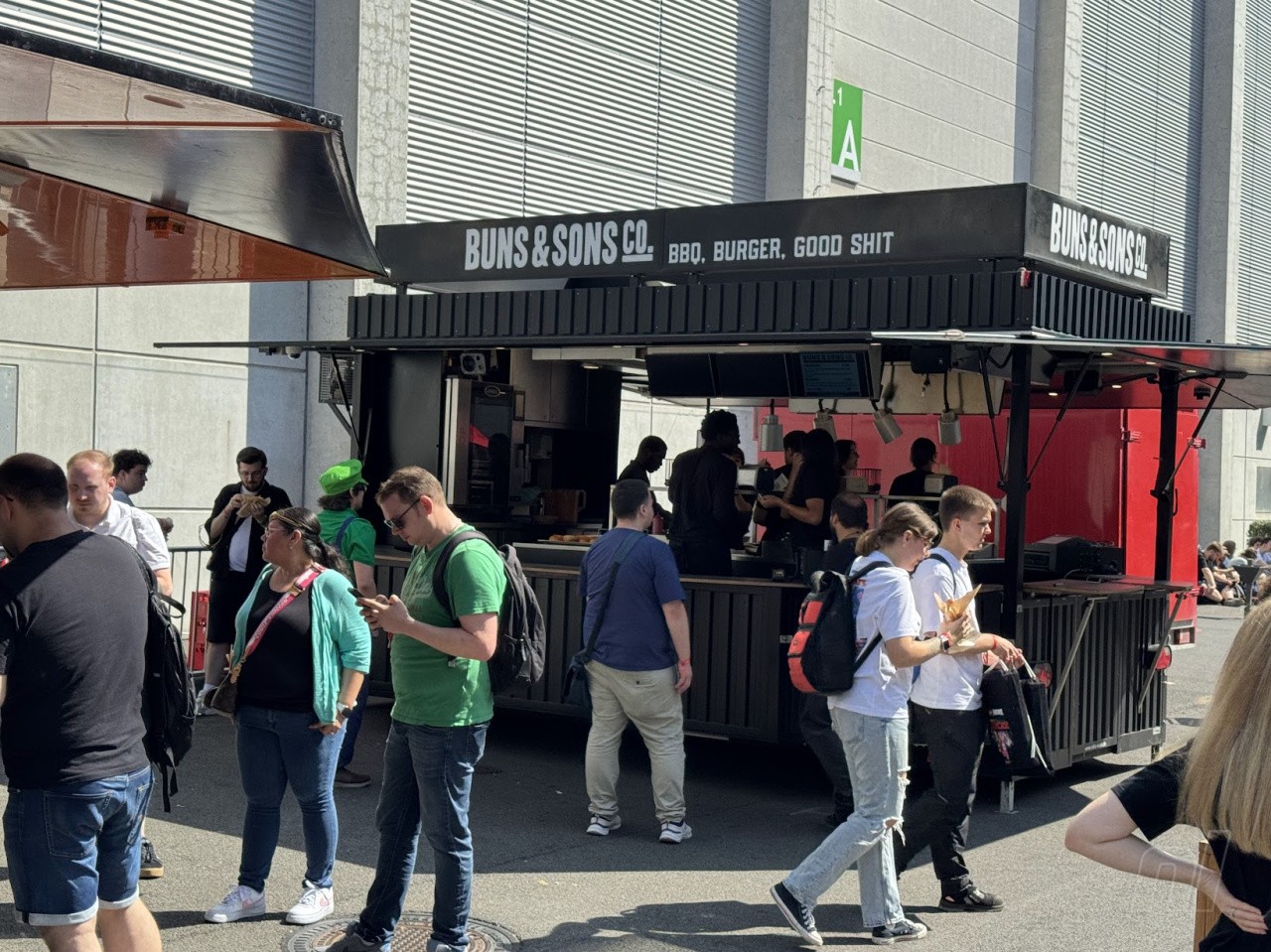 Unsurprisingly, outside it was the expected pom frites (chips), burgers, bratwursts (hog dogs), fried chicken and pretzels on offer. The quality was decent, probably better than food in the UK, to be honest. I should add that there was also a very popular Subway stand on the showfloor.